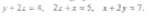 2xy - y + 3z = 9;x + y +z = 6 and x - y + z = 2.