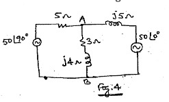 (b) Using superposition theorem determines the current through the branch AB, for the circuit shown in fig. 4.