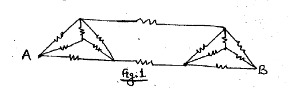 (a) Find the equivalent resistance across AB in the Fig. 1, all the resistances are equal and 5 ohm.