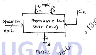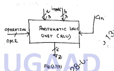 b. Describe the development of HDL code for an ALU and write VHDL/verilog code for ALU shown below.