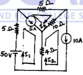 Using mesh current method find current through 10 resistor in the circuit shown in Fig.Q1 (b)