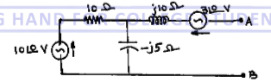 Obtain Thevenin's equivalent network of the circuit shown in the following figure and thereby find current through resistor connected between terminals A and B.