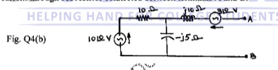 Obtain Thevenin's equivalent network of the circuit shown in Fig. 04(b) and thereby find current through 5 resistor connected between terminals A and B.