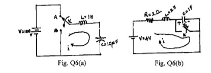 In the circuit shown in Fig. Q6(a), the switch K is changed from position A to B t = 0. After having reached steady state in position A. Find i, and at t = 0
