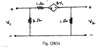 Find Y and Z parameters for the network shown in Fig. Q8