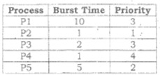 The processes are assumed to be arrived in the order P1, P2, P3, P4,and P5 all at time 0. (i)Draw the Gantt Chart illustrating the execution of these