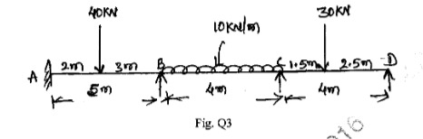 Draw SFD and BMD for the propped cantilever beam loaded as shown in Fig. Q6(a). Use consistent deformation method.