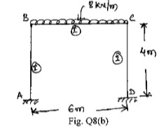 Analyse the frame shown in Fig. Q6 by using Flexibility matrix method. Use system approach. Draw BMD.