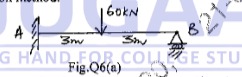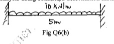 For a rigidly fixed beam AB of span 5m carrying a uniformly distributed load of 10 kN/m over the entire span, locate the point of contra flexure and draw BMD and SFD. [Fig.Q6(b)].