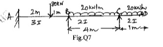 Analyze the continuous beam shown in Fig. Q7, by three moment theorem. E is constant.Draw the BMD and SFD.